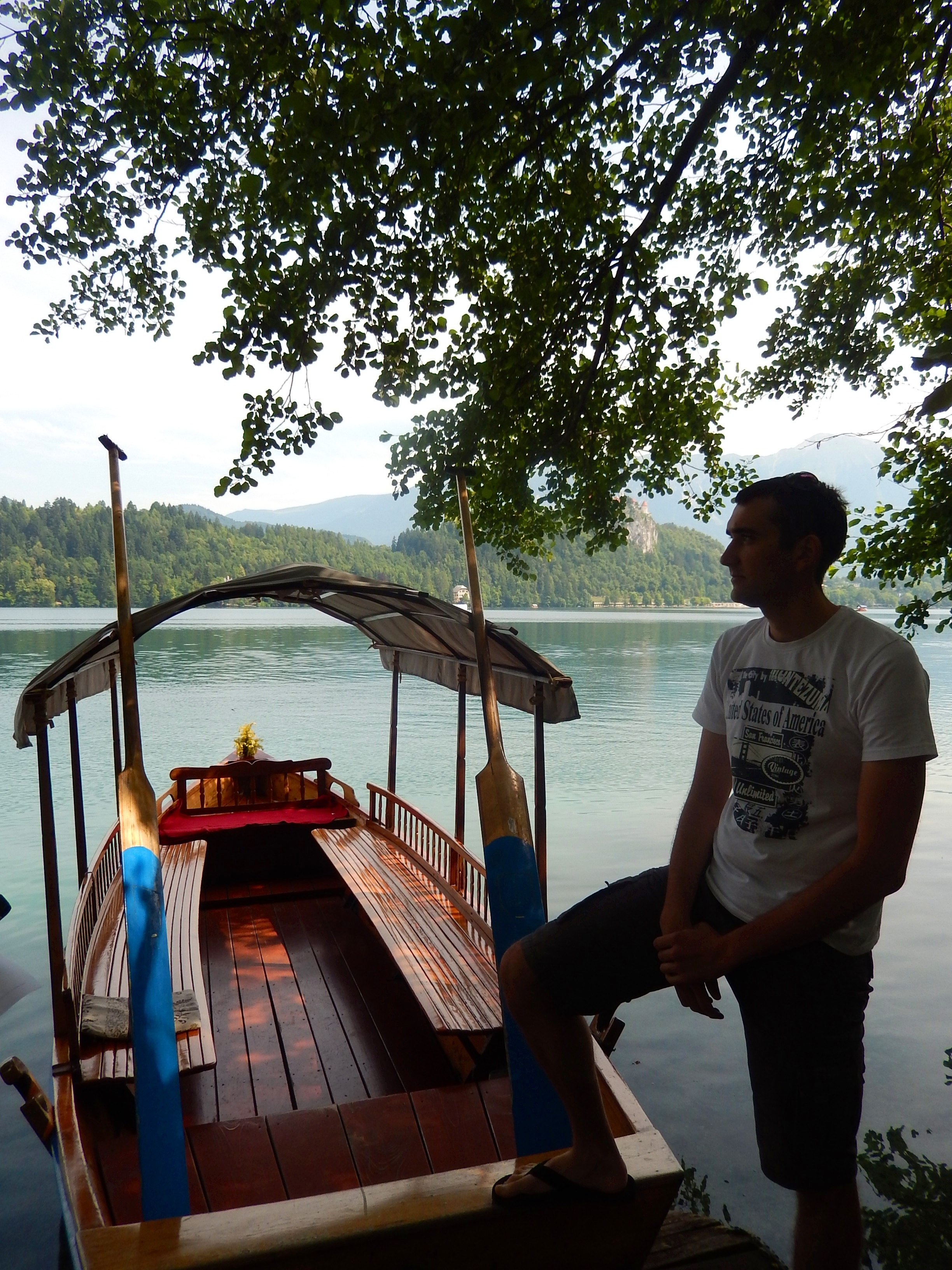 Returning to the lakeside, we board a pletna boat to go out to the island. These are timber boats with a flat deck for carrying cargo. The capacity is around a dozen people, spread around evenly for stability. The oarsman stands at the rear and rows with two paddles using a figure-of-eight motion. After my experience in a rowboat I have a higher appreciation of his skill.