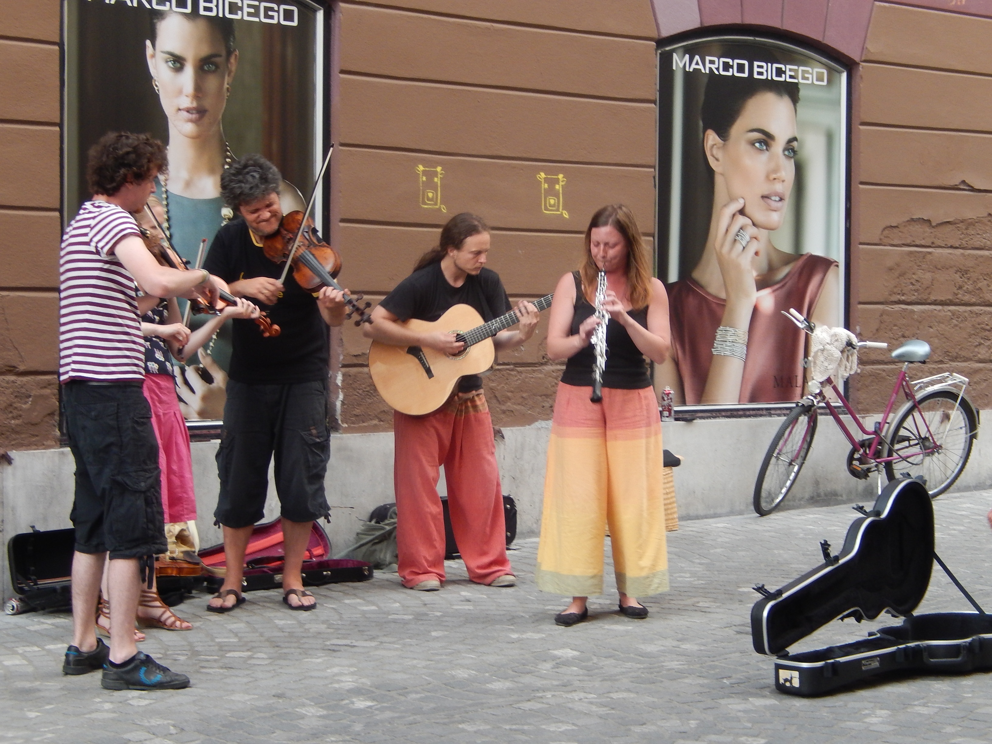After a simple meal at a riverside restaurant we stroll back to the apartment, winding our way through town squares with floodlit well kept official buildings. Just behind every view stands Ljubljana castle. Waddy and Jay had visited it earlier in the day, but that is one we have to say we missed. Castles, cathedrals and churches. It is easy to get overloaded on the grand European tour. But the music is always diverse. Tonight we listened to a group busking. Guitar, fiddle, recorder and oboe – traditional folk music, some of it even sounded Gaelic. Happy jaunty airs, just right for a happy summer’s evening.