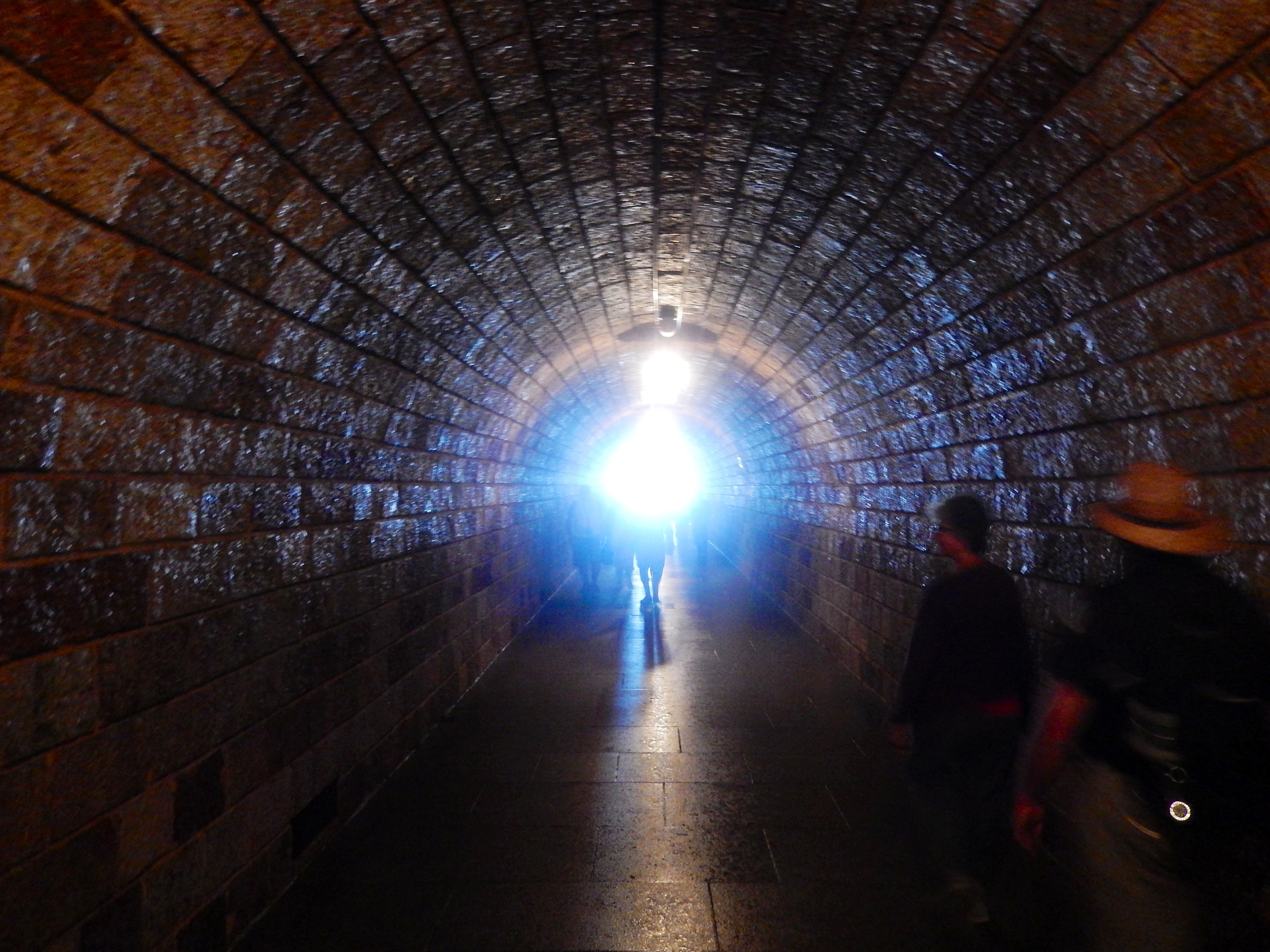 Into the tunnel leading to the lift that takes to up to Eagles Nest