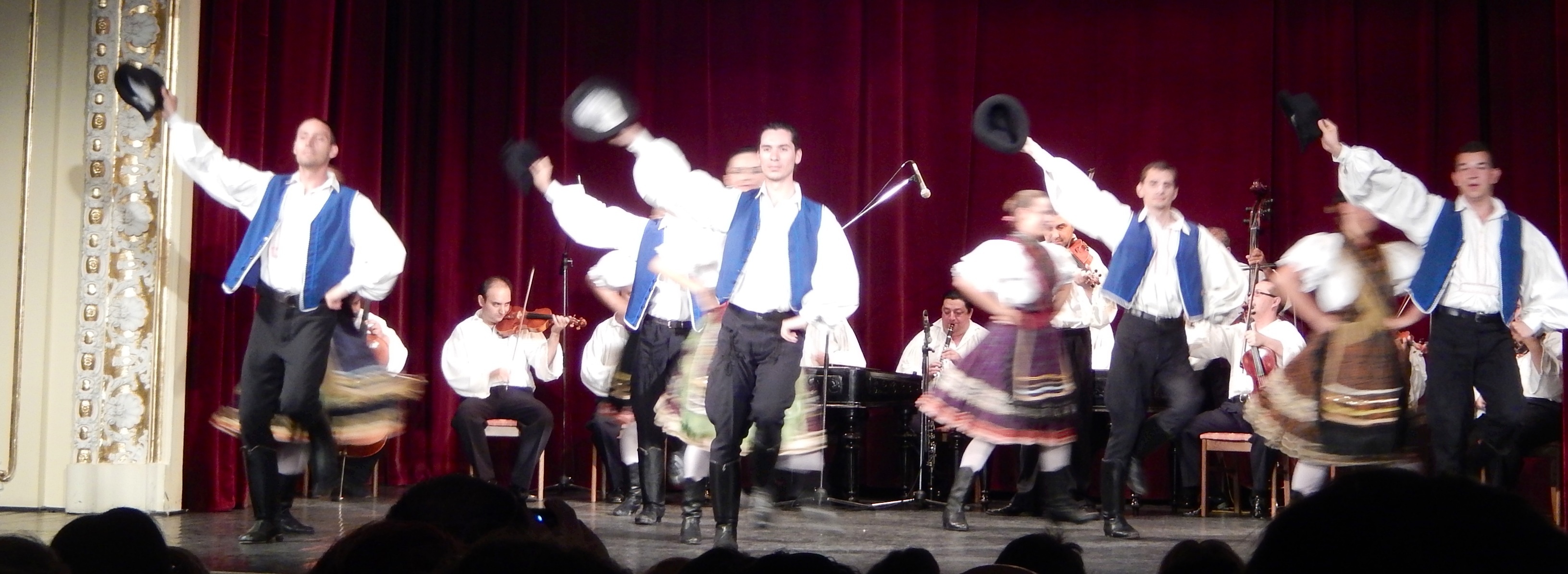 On a lighter note, we were entertained in the evening by the Hungarian Folk Ensemble and Orchestra, at the Danube Palace which was built in 1895. This troupe performs traditional music with a gypsy flavour, and alternates it with folkloric dances in national dress. It was a lively and spontaneous presentation that included music from Liszt and Brahms as well as the snappy gypsy improvisations. The orchestra was having a great time, taking turns at solo spots, or playing off against each other. The concert included an instrument called a cimbalon. I couldn’t see it from the front, but it looked as if it was a xylophone or harped stringed instrument, about the size of a large keyboard, and struck with a drum stick covered with a soft pom-pom. Very engaging music.