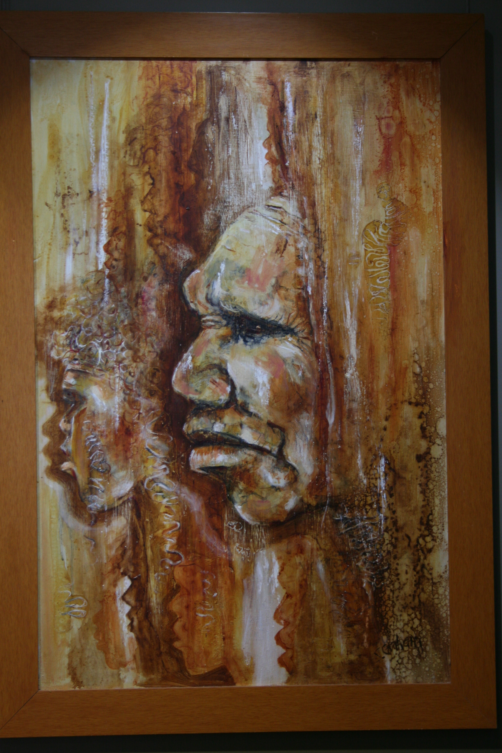 We drove through the forest on dirt fire trails, reasonably wide and graded, although very rocky and sandy in parts, until after about thirty kilometres we reached “Sculptures in the Scrub” situated in the Dandry Gorge in the Timmallallie National Park. There was a well-marked 2.3klm easy bush-walk, going first along a ridge with an expansive view of the gorge below, and then descending into the gorge, walking along the creek bed and passing an area that was once an Aboriginal camp site. The creek was noticeable for its width and sandy base and we could imagine how strong it would flow when the floods come.
