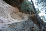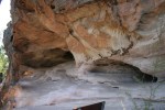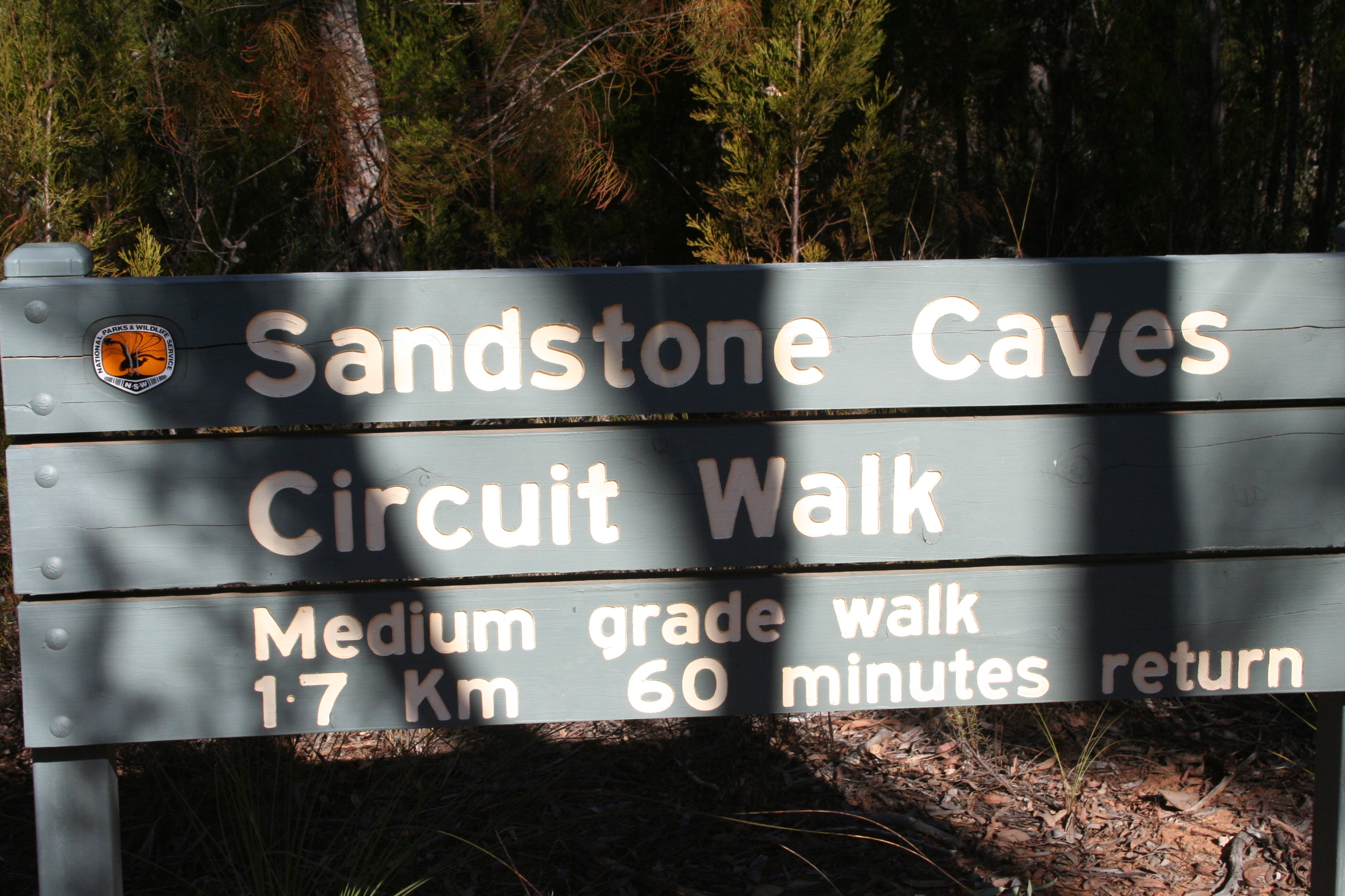 Again, these are significant in Aboriginal cultural history. The approach and turnoff is not well sign-posted, and the reason is that the local aboriginal community have requested this – due to vandalism of the ancient site. Nevertheless, there is here a well-marked 1.7klm walk that leads through the forest and takes the visitor along a series of sandstone outcrops. The formation from water and wind erosion is impressive, tall stands of eroded rock and showing the colours of the sandstone sub-strata, in creams, yellows and ochres. Every so often, the erosion extends so far back into the rock that a cathedral shaped cave has been formed, and it is here that aboriginals would shelter and make implements such as axes and spears. There are grind marks into the rock where they would saw their tool back and forward to make it sharp, and at one spot there are some rock carvings of emu and kangaroo foot-prints.