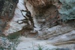 When we descended into the gorge, we finally remembered to stop and look back up at the sculptures as we passed underneath them. I thought the sculptures were a terrific idea, I couldn’t imagine how anyone would have come up with the inspiration. This development in the national park appears to be quite new, the track is well-defined with sandstone steps, and the picnic ground includes gas barbecues and tables under shelter, all very neat and clean. A real credit to the organisers. After the walk we stopped at the picnic spot and ate a roll that we had bought earlier at the take-away store in Baradine – glad we thought of that because we hadn’t come out prepared for hiking, apart from sturdy shoes and water.