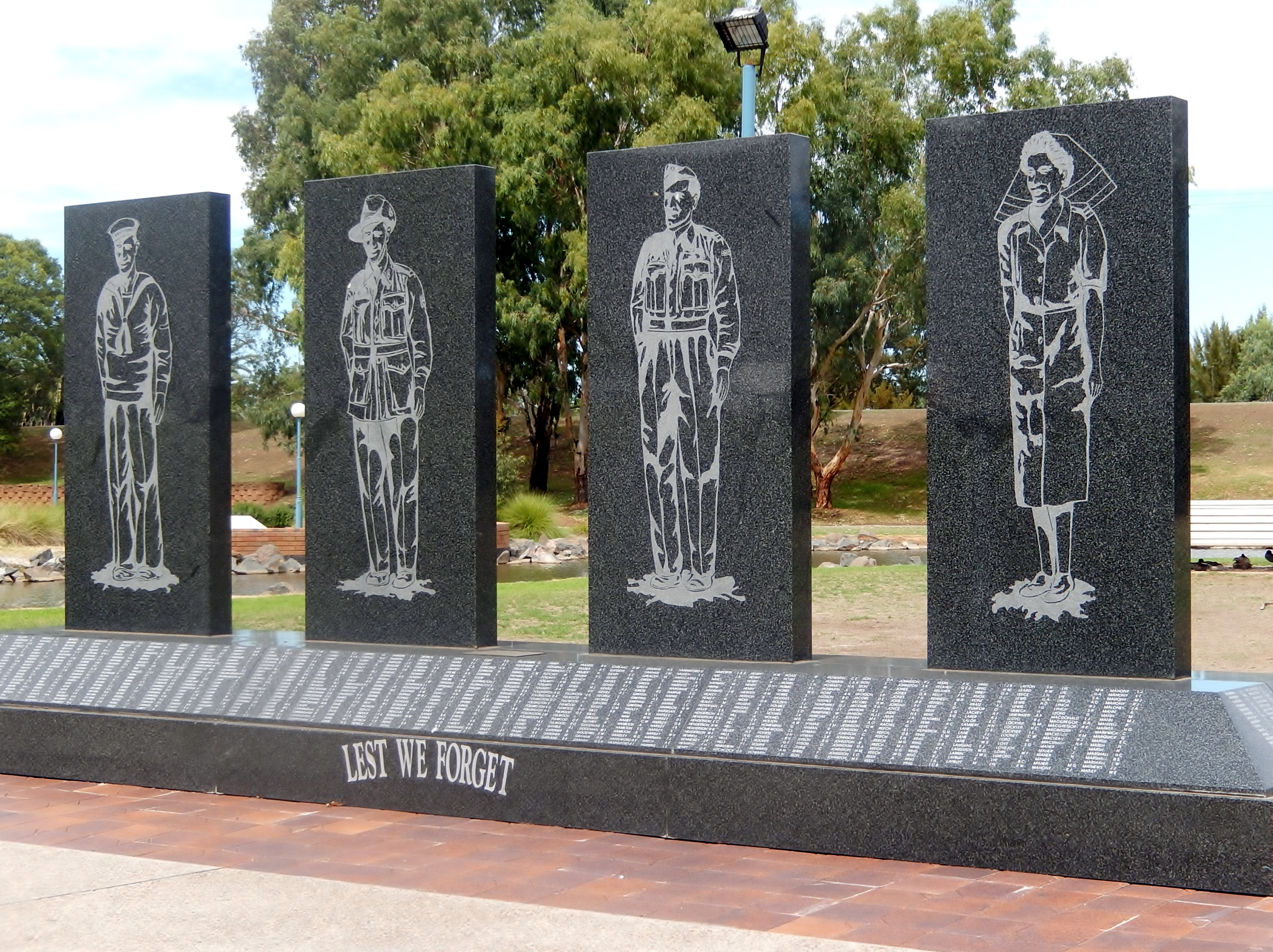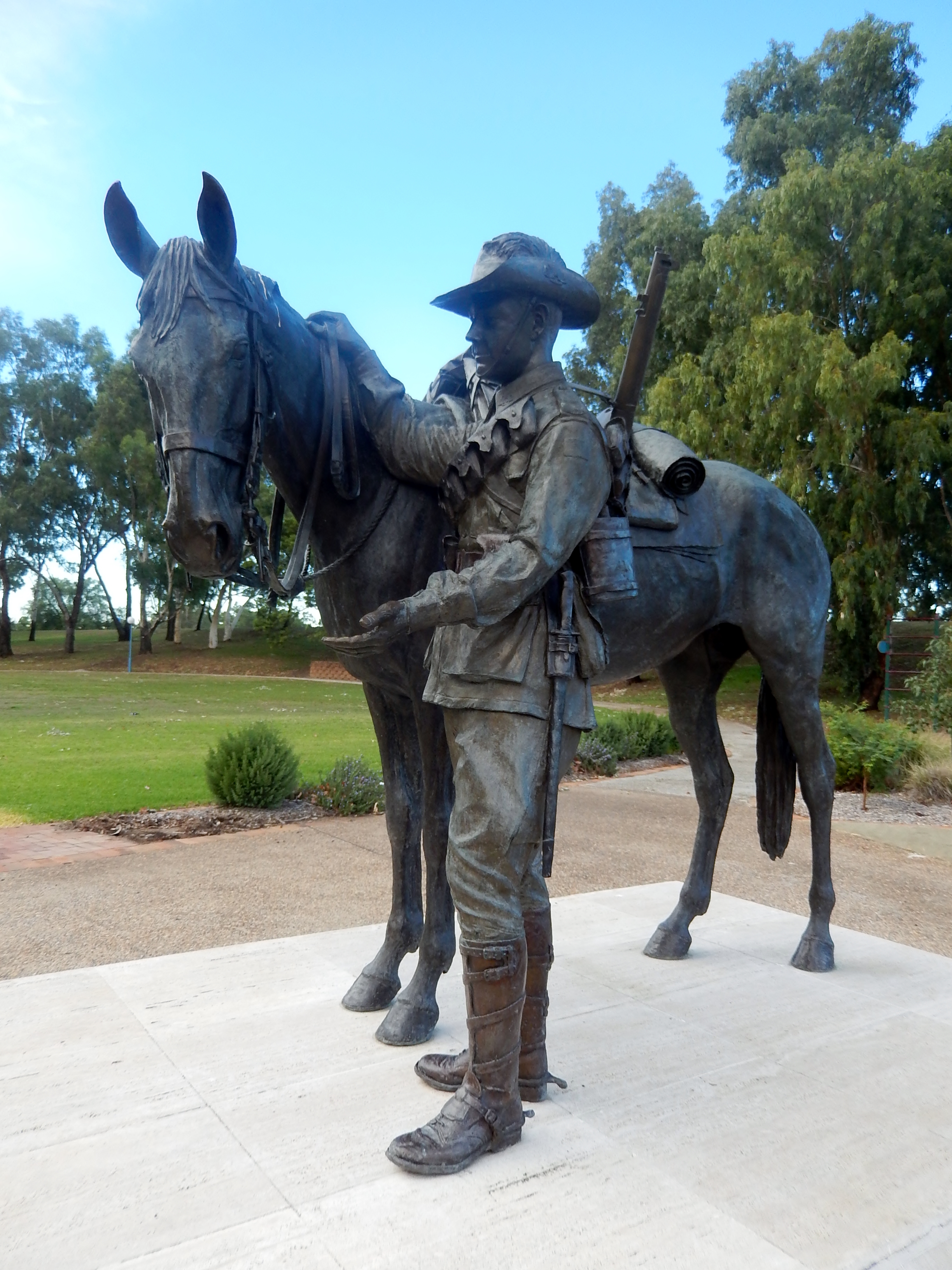 Within the garden we found the Waler Light Horse Statue. Beautiful, isn’t it? You can just about hear the chink of the bridle as the horse reaches out to the soldier’s hand. It is a tribute to the ANZACS and their horses, who served in WWI and previous wars. Hundreds of thousands of Australian stock-horses, known as Walers (because most came from NSW), were sent to serve as pack-horses and cavalry chargers, only one came home. The memorial is here because the 12th Light Horse regiment comprised boys from the bush of this and surrounding areas. They were involved in many actions in WW1, but on the 31st October 1917, the regiment was engaged in a charge at a town called Beersheba (near Jerusalem), which has become the stuff of legends. . .