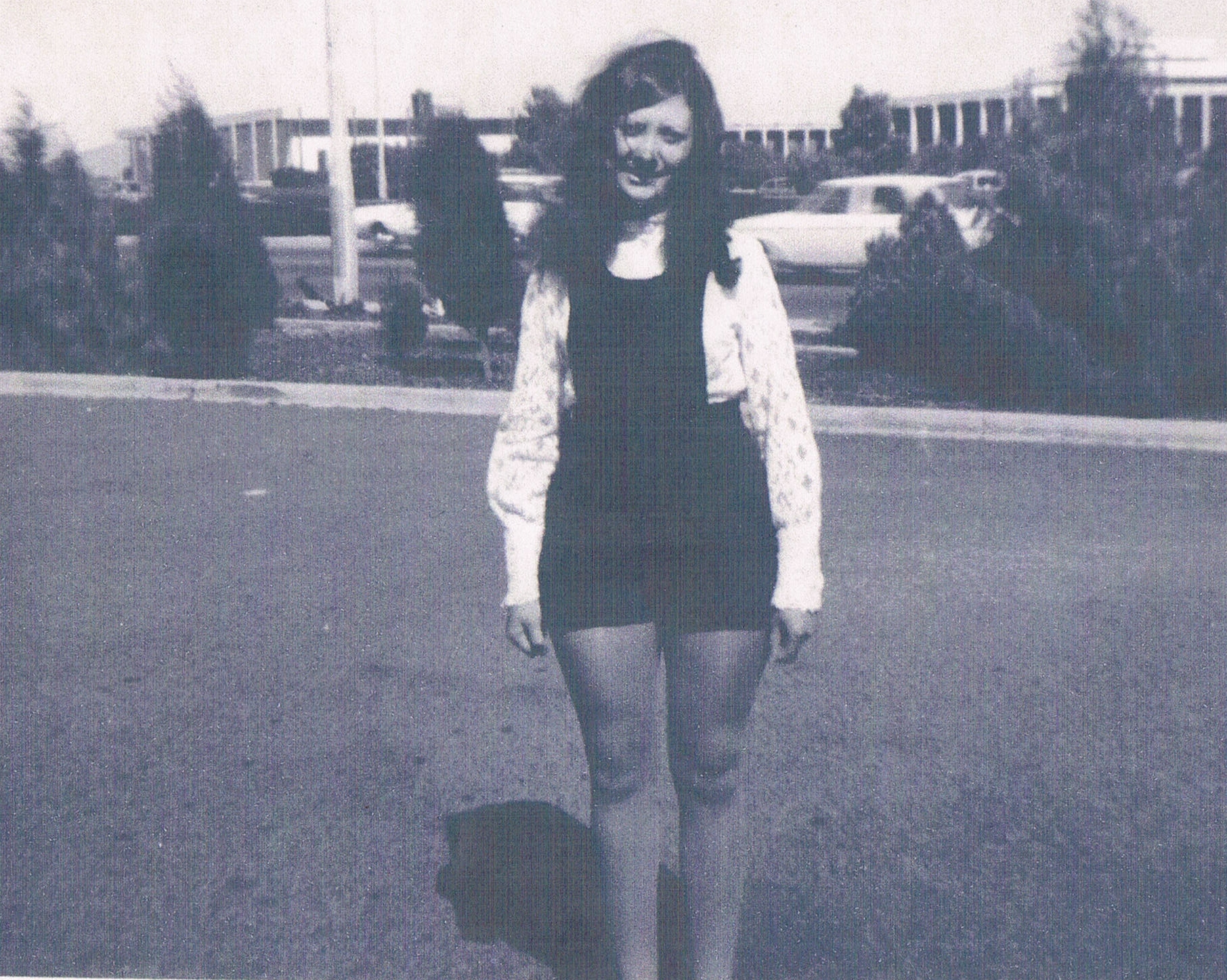 Here’s the real deal – A hot-pant wearing sixteen year old in 1971 before blow dryers or GHDs were invented (nice lace blouse though); contrasted with her alter-ego – wearing a top which normally has leggings underneath, and donning a wig which made her look more like Hiawatha or Pocahontas. There are so many things wrong with the passing of years! I stuck on a pair of silky pantyhose to deflect attention from the leg cellulite – ladies of my generation – I suspect you know what I am talking about :-), but what to do with that double chin?