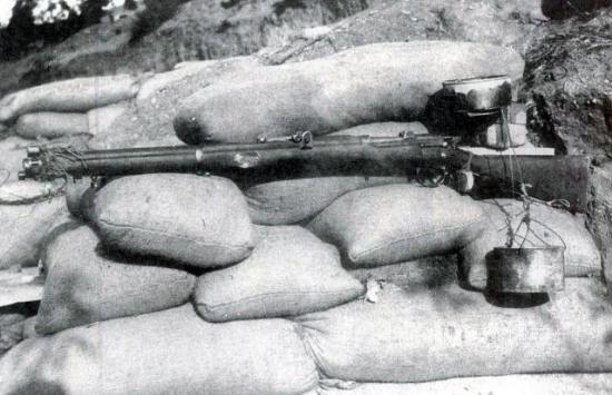 The drip feed rifle was implemented during the evacuation of Gallipoli. A string was connected from a jam tin to the rifle trigger. Water from an overhead container dripped into the tin. At a certain weight, the rifle would fire. Sporadic firing left the Turks with the impression that Anzac Cove was still being defended. (picture source: http://www.firearmstalk.com)