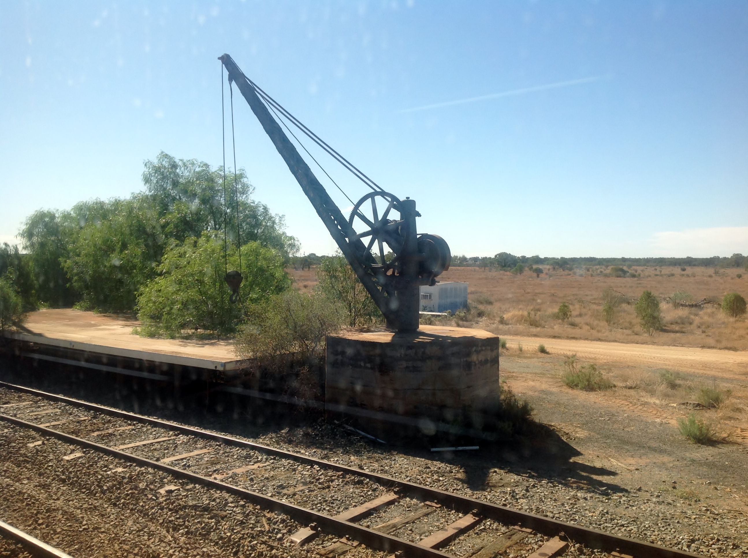At 4.30pm we pull into Ivanhoe, gateway to the Far West region of NSW. I take care to take a photo of a disused crane because in researching this trip I came across the blog of a rail enthusiast who was very taken with it. According to the Office of Environment Heritage, Ivanhoe station is: