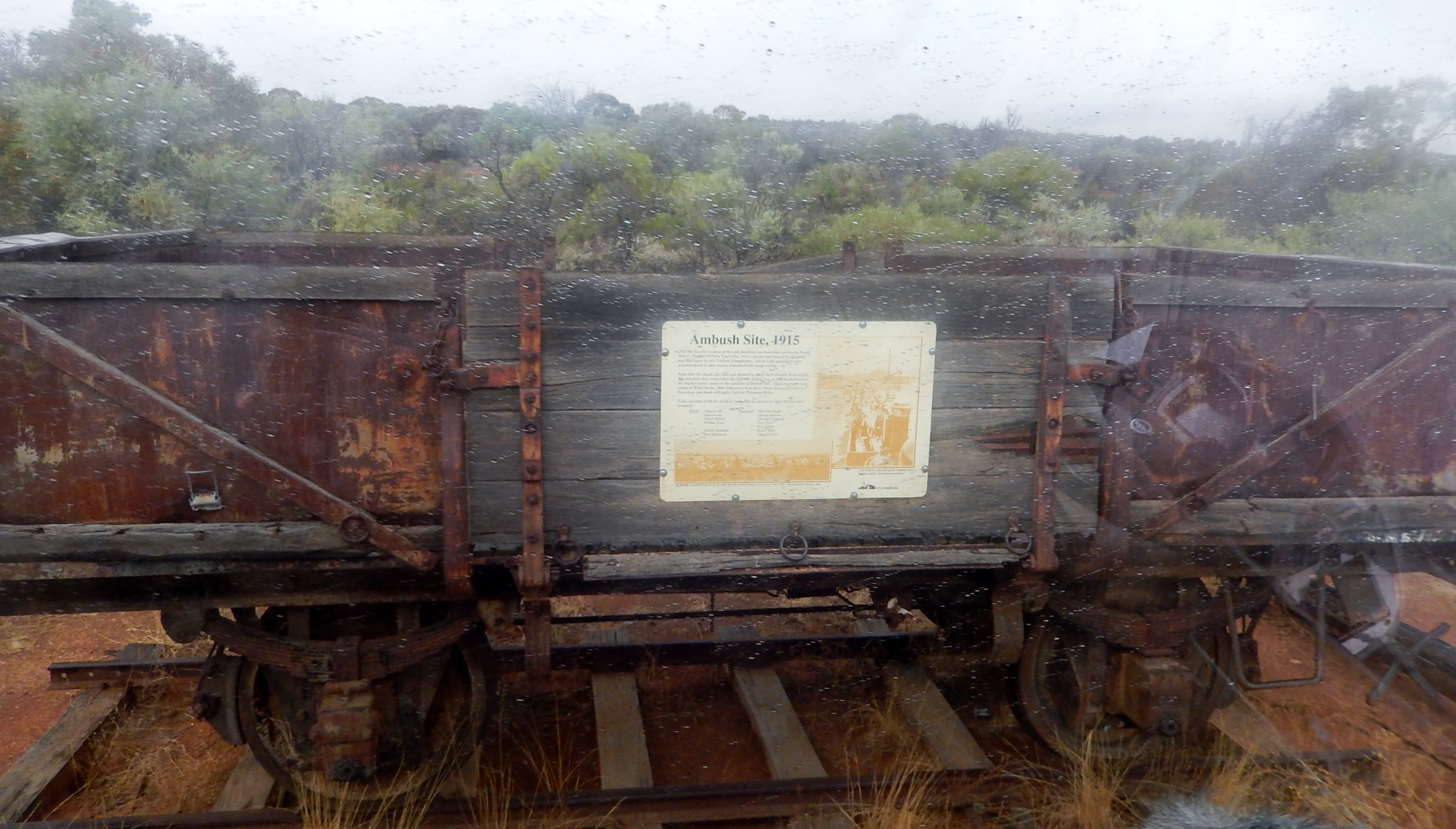 It was spotting with rain (yaaay!) as, after lunch on Day 4 of our Broken Hill adventure, we drove past this object on our way to Silverton. It may look like an ancient broken down rail wagon, but au contraire, you can be sure there is a story behind it, and I am about to give you my version.