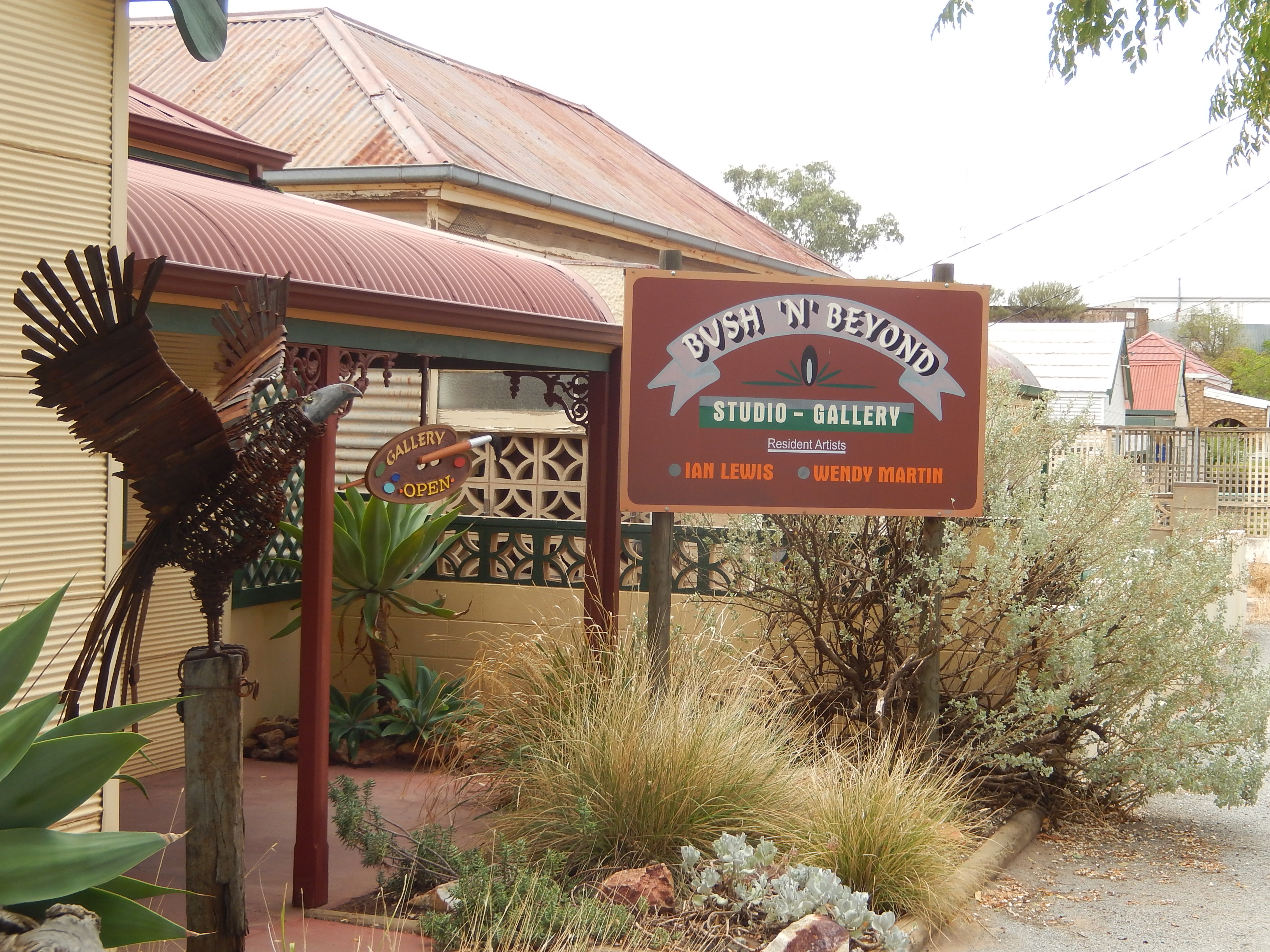 Our afternoon tour took us to artwork of a different calibre. There are over twenty galleries in Broken Hill and Silverton, and first up for us was “Bush ‘n’ Beyond” run by Wendy Martin and Ian Lewis. They are mostly landscape artists, and some of Wendy’s pieces were on loan to an exhibition at the city art gallery when we called in. I bumped into her later in the week when she was loading it in the car. It was a story of the disappearing river in three pieces. The first from her childhood memories of a full river, then a reduction, and now a trickle. Each piece was a smaller height than the first, representing the diminishing form of the river. It was very striking.