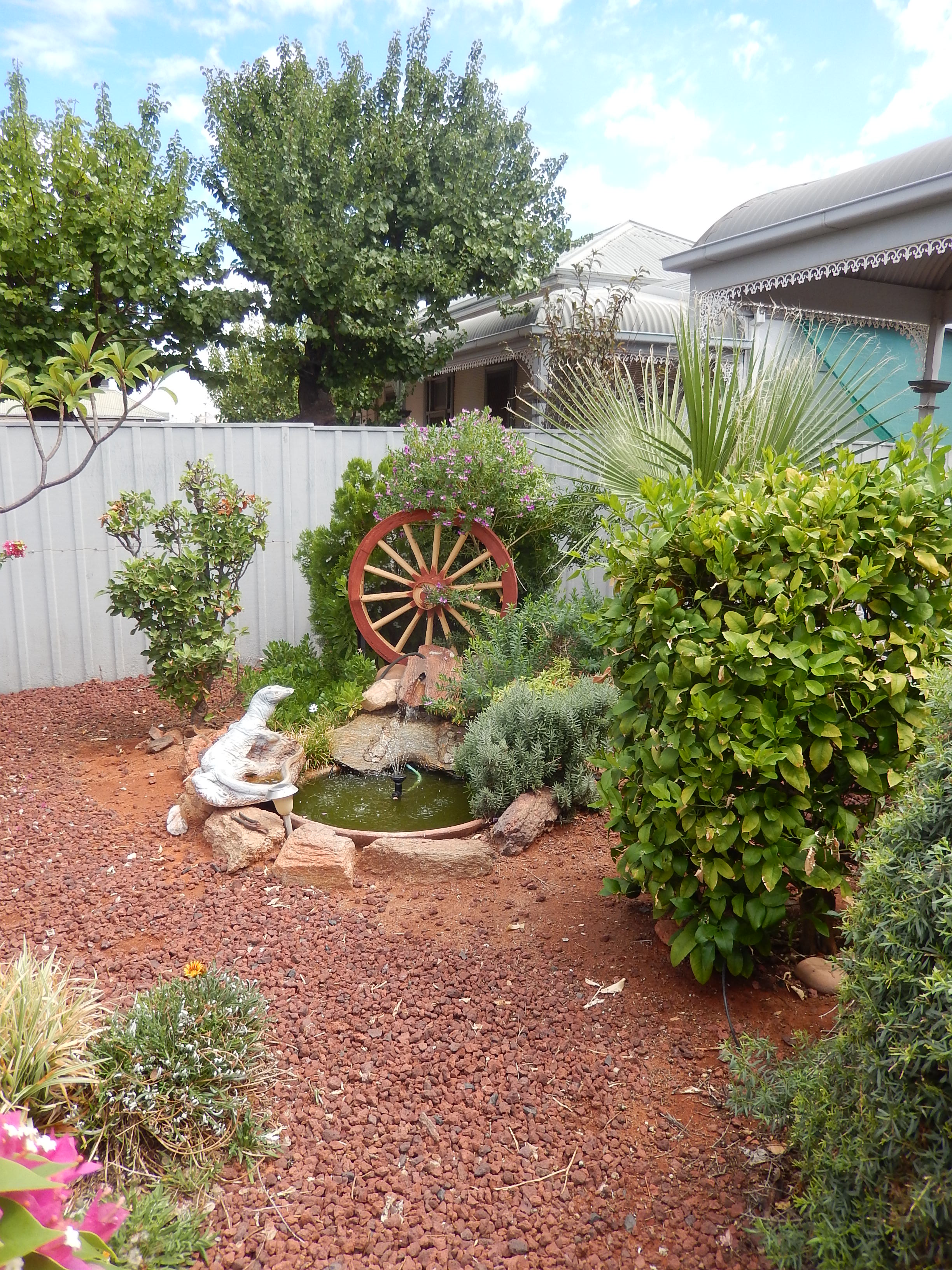 Jack Absalom is well known in Australia, and possibly to some of my overseas readers. A former miner, he discovered his talent by accident, and now his oils of outback Australia are an iconic part of our artistic landscape. He is getting on a bit now (born 1927). We were told he is a captivating raconteur with lots of stories worth listening to, but on our visit this day, although he popped his head out to greet our arrival, he didn’t stay to chat, and left us to wander his gallery at will. Like most of the artists, the gallery is within their family home, and the Absalom front garden is a very pleasant place.