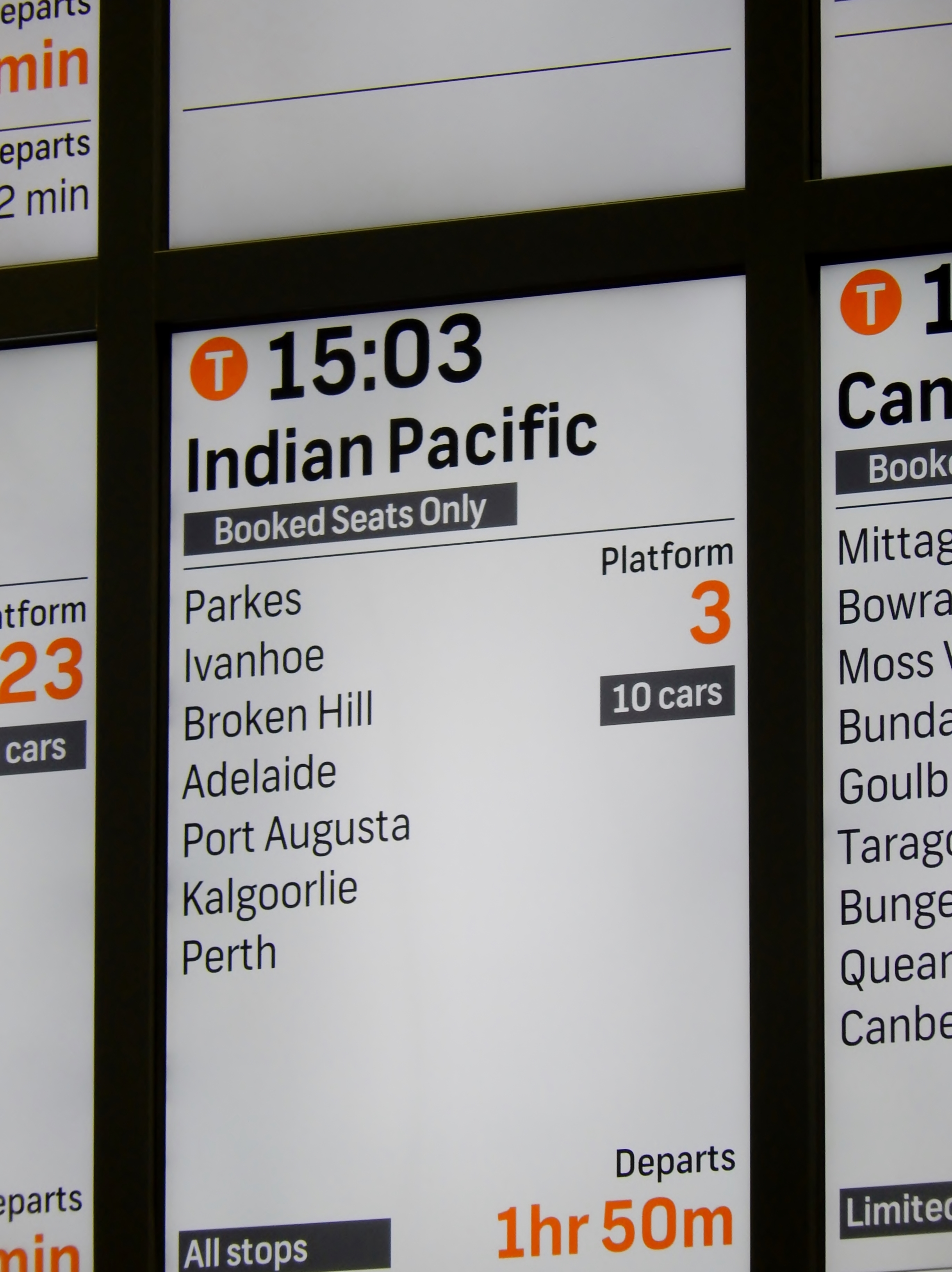Departure Board Indian Pacific Sydney Central Rail Station