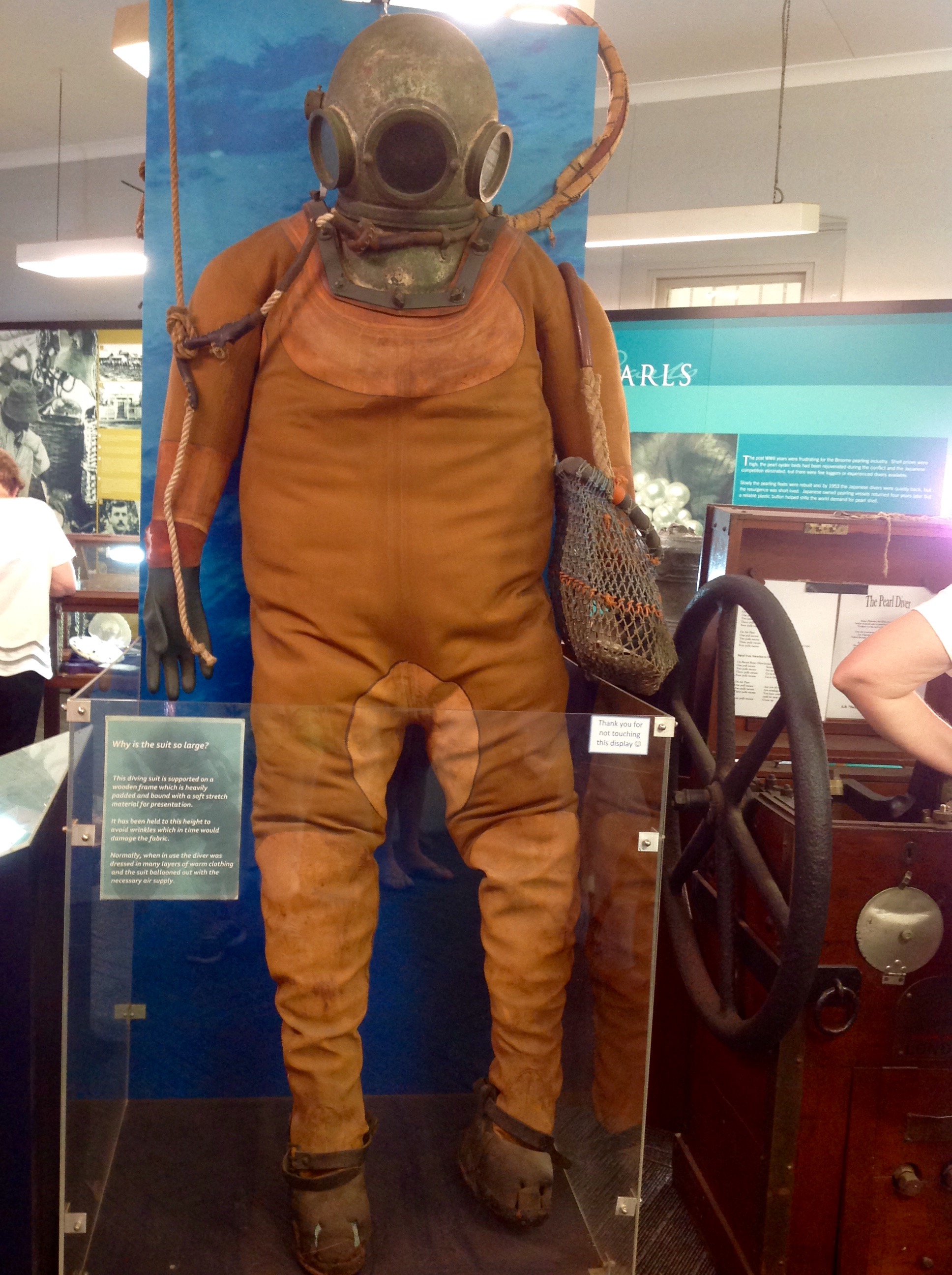 It wasn’t much better for those who followed in their diving suits, even though they were paid a small wage. Wages that were too low to attract European divers to such dangerous work, but did appeal to Japanese, mostly from Taiji. I stumbled across another story in regards to Taiji, but I didn’t record the details, and now can’t find anything to back it up. It was something about whale-hunting, offending an angry spirit, who retaliated by destroying the town/livelihood, which in turn created a mass migration. I am not sure of the year or the truth of that, but Broome does have a sister city relationship with Taiji. Divers stayed down as long as possible because they were paid by the shell. Too long in some cases. In 1913 thirty-three divers died of the bends, and another seventy-five over the 1912-1914 period. Almost a thousand people have their final resting place in the Japanese Cemetery we drove past a few days ago.