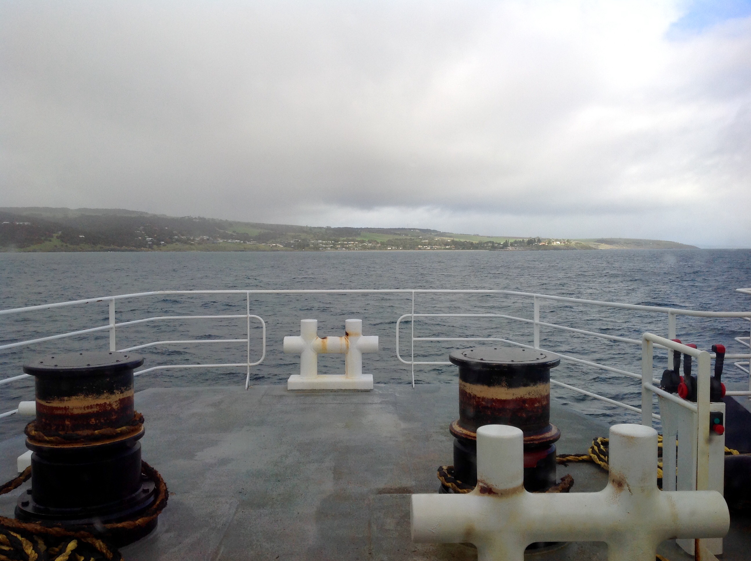 It’s another 6.30am start to the day as we drive south from Adelaide for a couple of hours down the Fleurieu Peninsula through vineyards and rolling hills until we reach Cape Jervis, where we connect with the ferry for the 45 minute crossing to Penneshaw. The crossing is a touch rough on this wintry day. Bill and I are old salts, so are happy to sit up front and take in the view, but if you are the slightest queasy, it is worth knowing rear seating feels more stable.