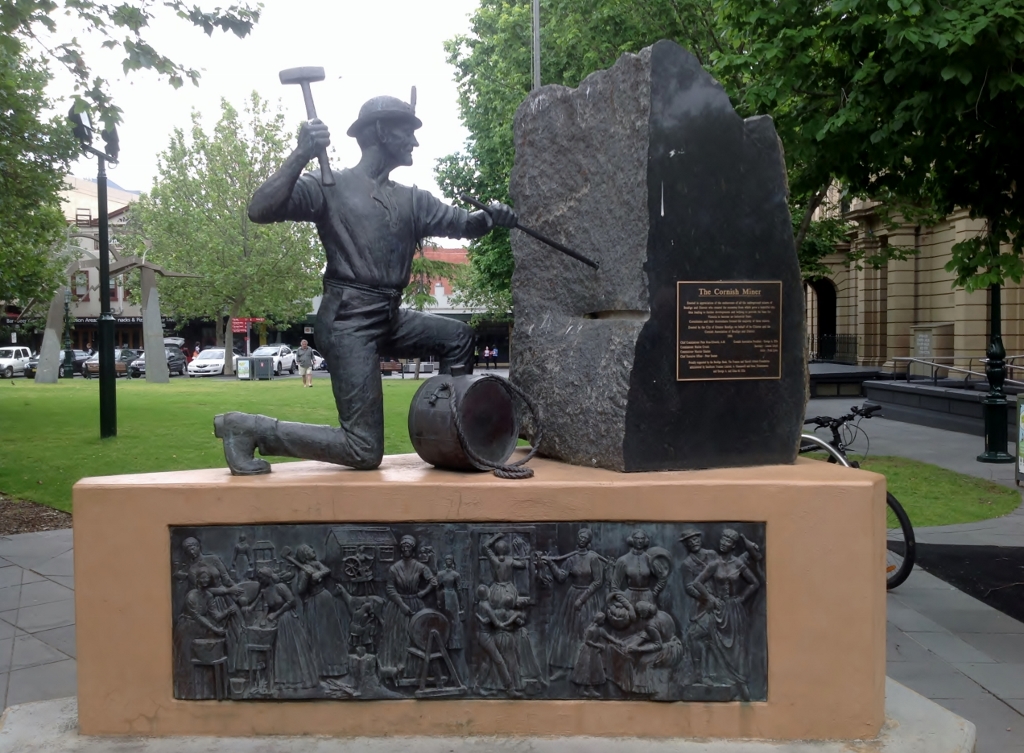 Another group enticed to the goldfields were Cornish miners. When the alluvial gold ran out, the Chinese left the area or found other employment, but the Cornish knew how to dig underground, and their efforts are commemorated in this statue.