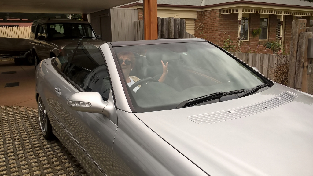 The twenty minute drive to Rosebud hugs the shore line; and then we are there! They are planning a street party with their neighbours this afternoon, so we need to pop out for some groceries. Time for a spin in the convertible! Now that’s what I call shopping in style.