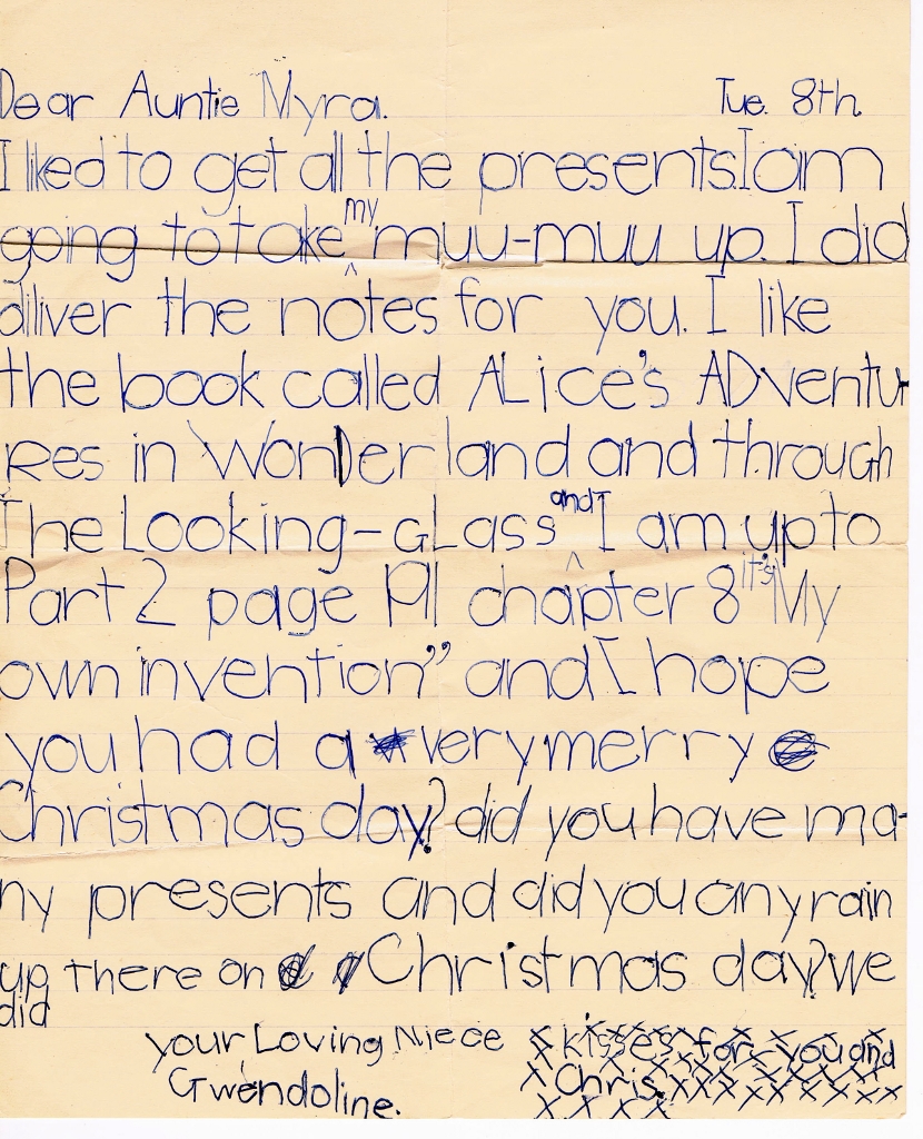 My auntie died in 2011, aged 96. That is when I discovered she kept many of the notes and letters I mailed her. I am happy to say I thanked her for this beautiful book, and also the dress (muu-muu) she had sewn for me. It’s interesting to note that even in 1962 we had rain on Christmas Day. We so often blame it on climate change now. My auntie was on tank water at the time so she would have been pleased to get rain no matter which day it was.