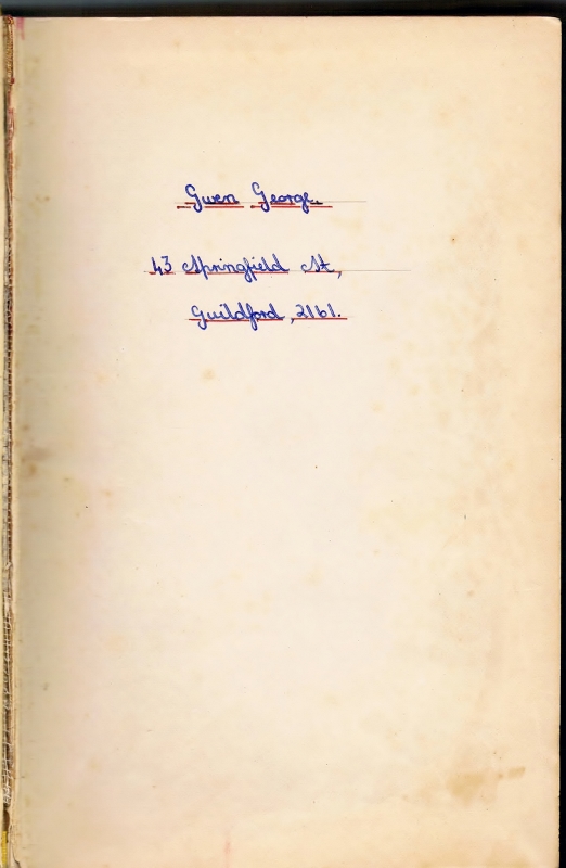 the-water-babies-charles-kingsley-1-522x800Somewhere along the line I decided I should add my name and address to all my books. I’d say this was just after I started high school (turning thirteen). I met a new friend there who was left-handed and I greatly admired her back-sloping handwriting so I tried to imitate it. Plus I have shortened my first name. I am using a fountain pen dipped in the blue and red ink stored in my inkwell. The pencil lines that I measured from the top of the page and drew in lightly are still visible. This was to ensure my words went straight across the page, and that there was a double space between my name and the address. When I first started work this kind of approach was termed “meticulous“. By the time I finished work several decades later, it was termed “anal retentive“.