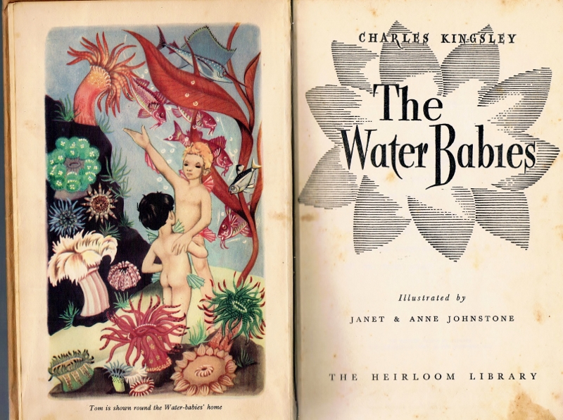 the-water-babies-charles-kingsley-3-554x800Except, it does mention the names of the illustrators. The book is filled with delightful pen and ink drawings, as well as the colour plates. Here is one example to the left. According to Wikipedia, the Johnstones were twin sisters. One of the sisters died in 1979 and the other in 1998 – much later than this book would have been printed. Their popularity began in the 1950s . . .