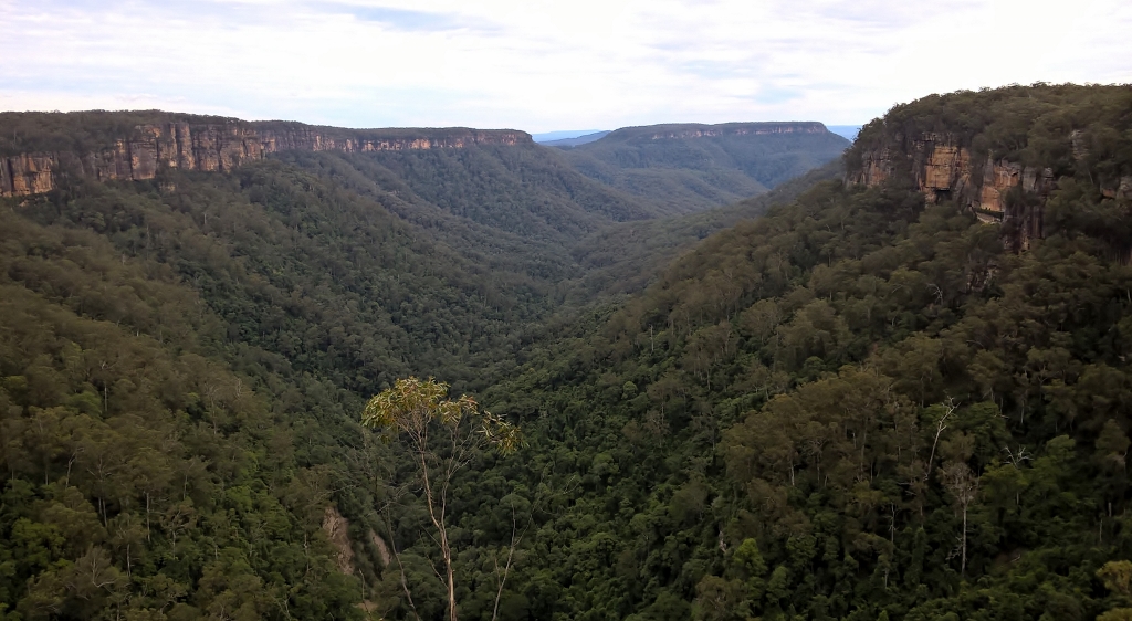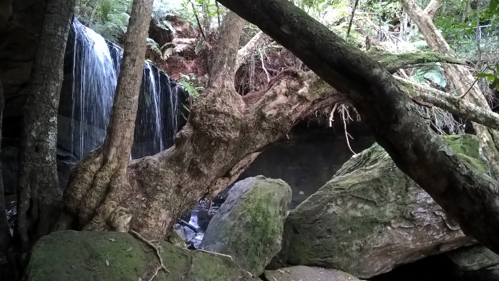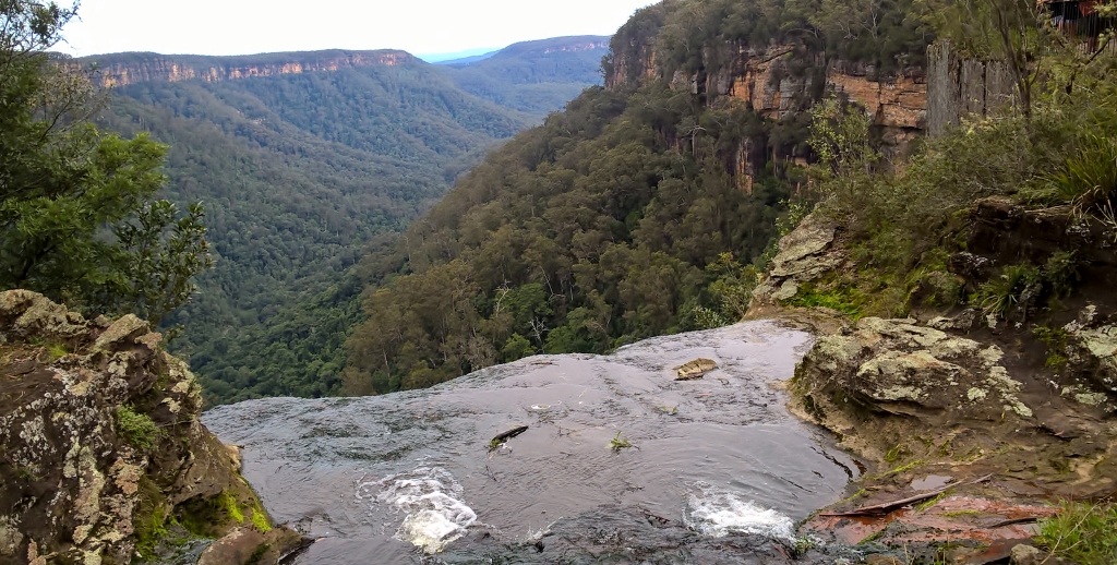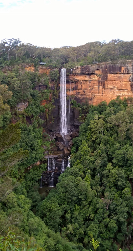 We took the West Rim Track, which requires moderate fitness. The track is fully formed, however there are some steep steps, and one small part was water-logged and slippery. It’s not a huge distance, about 4km (2.5 mi) return, but it did feel longer, especially as there is so much to stop and admire. Casual visitors can reach the first lookout within ten minutes and look sideways at the main waterfall. You can make out the structure in this photograph.