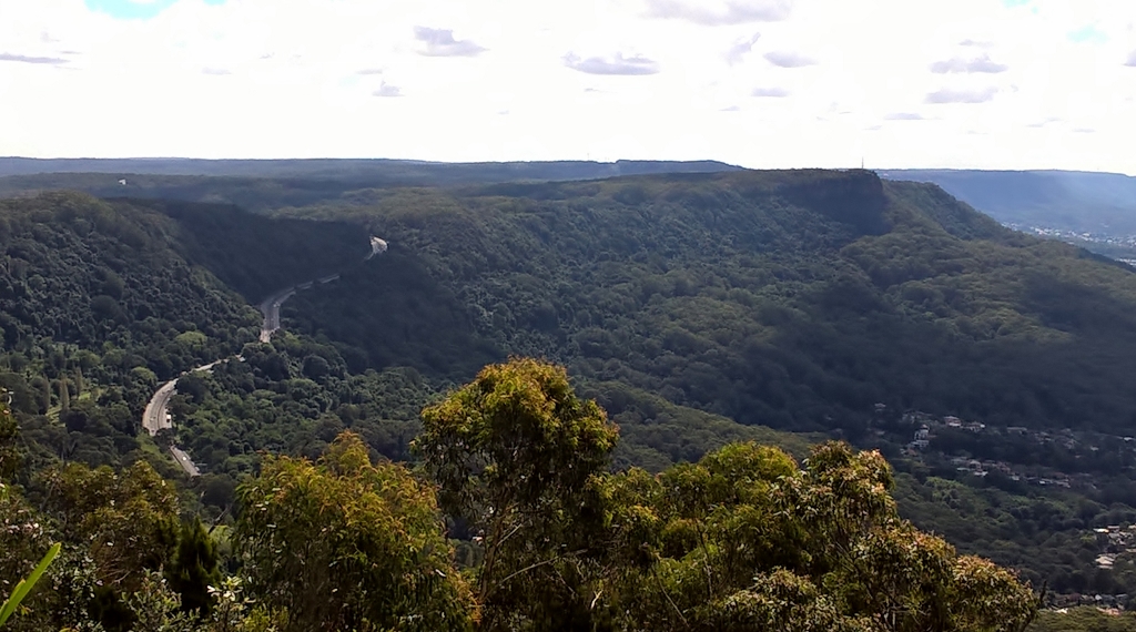 In the below shot, you can see the main road snaking up Mount Ousley which is our starting point for driving north to Sydney. It is often fog bound even if it is clear on the coast. I came home in a lashing thunderstorm last month, and I can tell you it was hazard lights all the way!