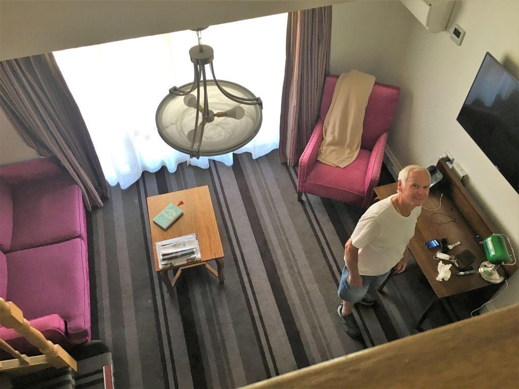I’d booked a mid-range room at the hotel, and the first lovely surprise was an upgrade to a loft room. No good if you can’t climb stairs, but thanks to my Pilates classes, I had fun proving to myself I could run up and down them.