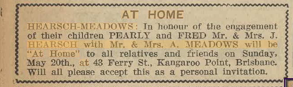 Joseph and Florette Hearsch announced all their family events in the newspapers, and so we follow their Silver wedding anniversary, engagements of their daughter, Pearl (1951), and son, Eddy; and later, visits with the grandchildren. They were also extremely active in various Jewish organisations for the next thirty years or more. Joseph died in January 1967. Dr Nae (Nicky) Reichman (Florette’s brother) died in 1976.