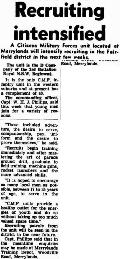 Sometime in the early 1960s my brother and his mate joined “D” Company, 3rd Battalion Royal NSW Regiment based in the Sydney western suburb of Merrylands (now the home of a McDonald’s store – so much for saving Australia from foreign invaders. No offence intended to my US followers, but it must be acknowledged it was an early part of the Americanization of Australian culture. And McDonald’s don’t put beetroot on their hamburgers – an integral part of the Australian version. What a sacrilege!).