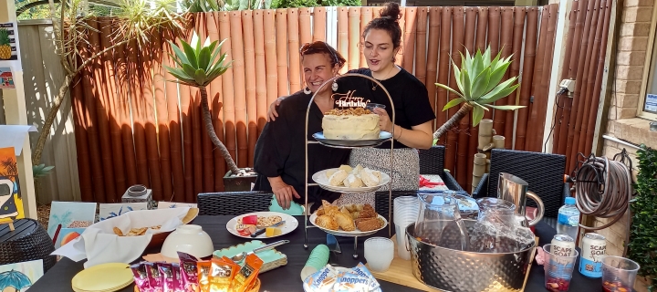 We’ve had some wonderful covid-limited family celebrations under this pergola over the last year: pre-wedding, 21st, 60th, graduation to name the highlights. My sister always decorates fabulously and puts on a cheerful spread. Then out come the camera phones all at once and nobody knows where to look 🙂