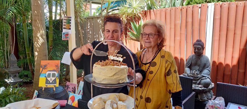 Here’s two generations of mums and daughters. My niece had made and iced the cake: