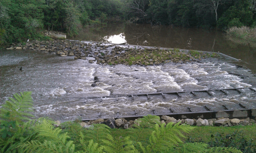 At the rear of the complex, on the river, there is a race. It’s a kind of weir that acts as a way of separating salt water from the Pacific Ocean and the freshwater of the river. The dairy farmers co-operative extracted the fresh water for their operations all those years ago. The water tumbles over the obstructions on the weir, as you can see in the below photo. The very interesting point is that this forms a home for local platypuses. Not that we saw any of these shy creatures on our visit. If you ever did, it would be time to buy a lottery ticket because it would be your lucky day.