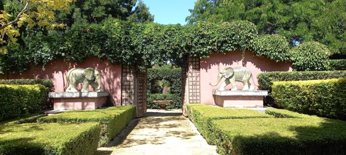 - The Indian Garden “carries aromas of India, having Curry plants filling the garden with their scent when you enter through the 160-year-old antique Indian Gates with two bronze elephants standing guard. Paths accompanied with Lilly pilly hedges lead to a mosaic of pebbles and ground-covering plants and a garden design, containing Purple Ajuga and Variegated Dwarf Agapanthus.”
