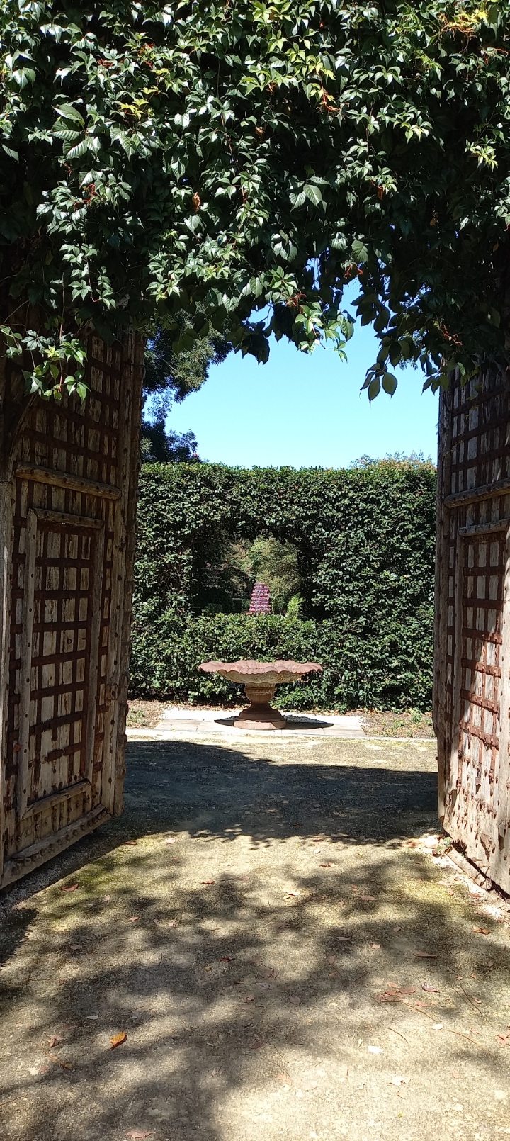 5. My photos of the Sunken Garden have failed to capture the size and perspective. Standing below, on the level where the topiary ducklings admire the view, one looks up to the 10 metre/ 32 feet high waterfall surrounded by trees that I suspect would be familiar to American readers. In the height of its season glory, the base would be ablaze with flowers and roses, and these would line the path up to the pergola at the top of the waterfall. Looking back down from there, one would see a kaleidoscope of colour.