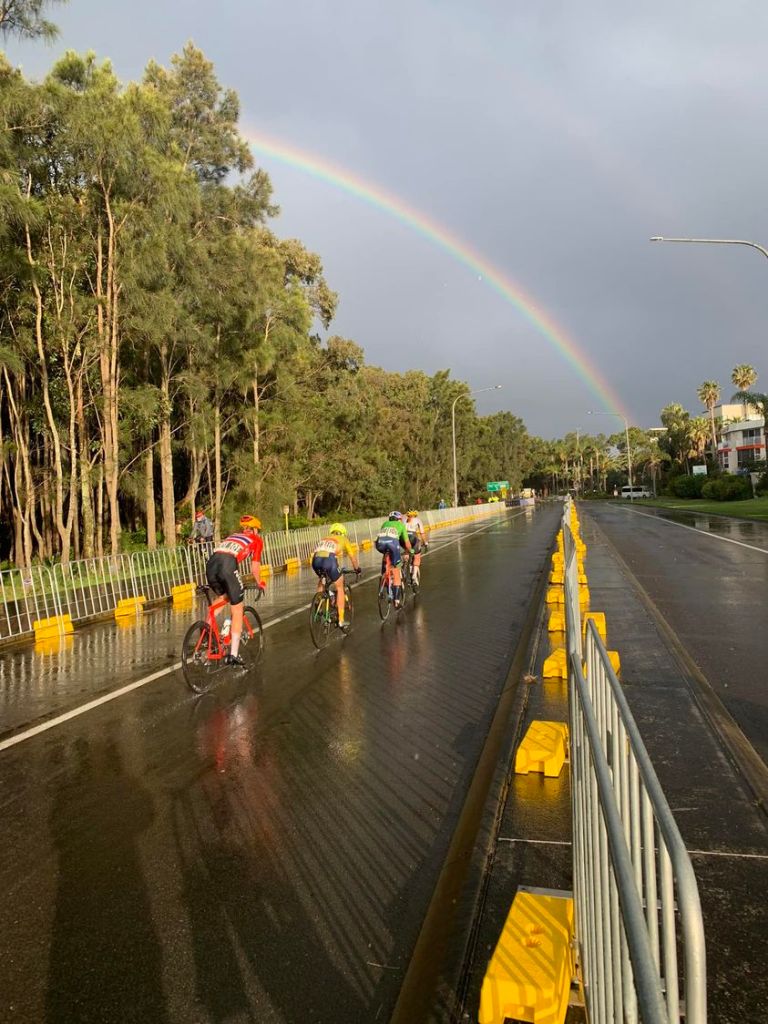 The riders are passionate about winning the rainbow jersey, and what a great shot to frame them cycling straight into a real rainbow.