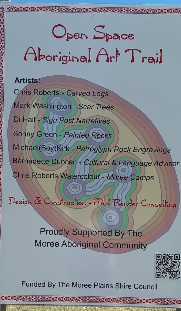 Meantime, back on tour, we headed to the Bank Art Museum – that’s the grand building featured in yesterday’s post. It is the only public art gallery in Moree and the surrounding region, and “promotes and enriches the cultural life of the community through a continually changing schedule of touring exhibitions from major cultural institutions”. It was living up to that boast, as it was displaying all the finalists in the Wynne Prize which runs under the auspices of the Art Gallery of NSW and is awarded annually for “the best landscape painting of Australian scenery in oils or watercolours or for the best example of figure sculpture by Australian artists”. I couldn’t take any photographs due to copyright, but if you have clicked on the link, you can see them there. This prize has been running since 1897 and what is noticeable is that with one exception in 1941 all the winners were white males, right up until 1971 when a white woman won. In the run up to the millennium some more women won on and off, and then the final breakthrough came in 1999 when an indigenous woman won. Since then, the bastions have been breached, and the finals have been dominated by works by Indigenous artists living in communities in central and northern Australia. This year was no exception. If you are interested in knowing more, you might like to read this article: From gum trees to cities to sweeping deserts.