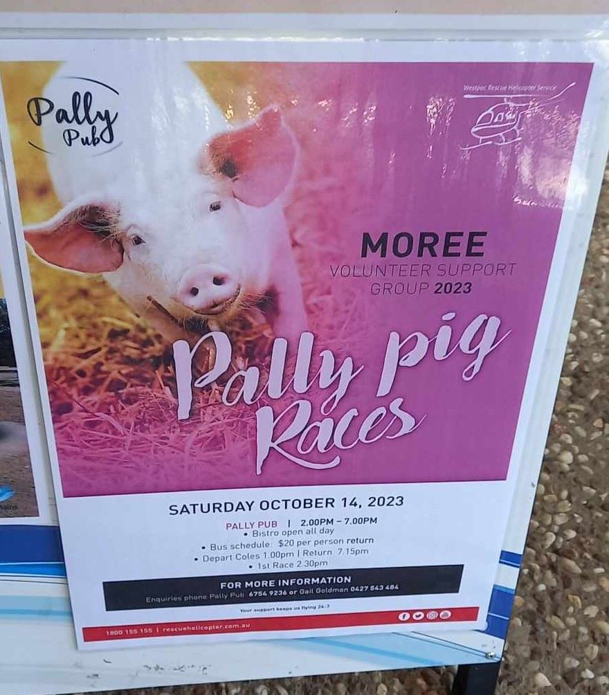As I mentioned in yesterday’s post, the temporary closure of the Artesian Spa meant we were in Moree with time on our hands, so what better way to fill it than to head half an hour back down the road we had come into town, to visit a small town called Pallamawalla for the big event of the day … drum roll …