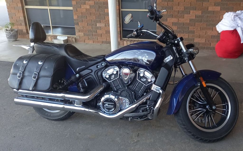 Red Dwarf, our 2012 Hyundai i30, did a great job. She started off red, turned brown along the way, and then shook off some of that dust as we continued. The Indian motorcycle in the background of the below shot, taken at Hay just before we left, was probably owned by the guy managing the motel. I was very taken with it.