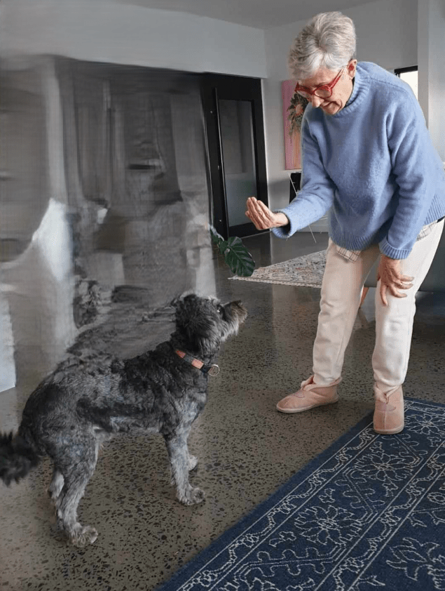 Another thing that made Soft Touch happy was me coming to greet her every morning and having a bit of biffo with her feet. She had a sheep on them. Something she called an Ugg Boot. Anyway, I graduated from pretending to bite that, to pretending to bite her hand. She went all gooey and said my soft mouth was a sign of trust.
