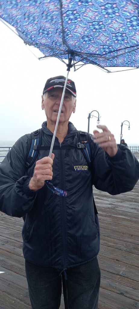 We did our best. It wasn’t blowing a GALE, although the umbrella got blown inside out. The weather for this entire trip has been disappointing. Hasn’t exactly stopped us – but it is getting tiresome.