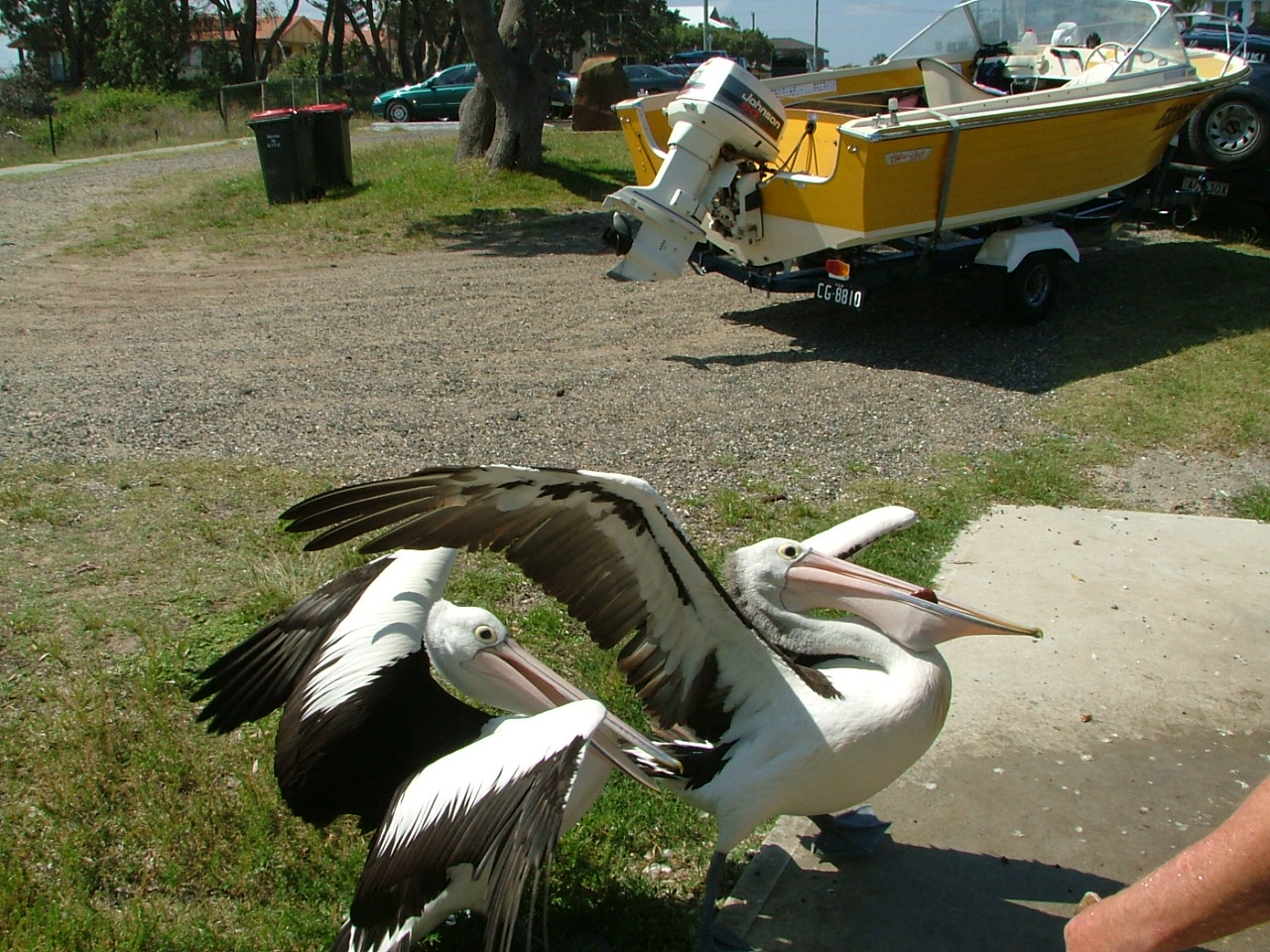 Pelicans feeding Harrington